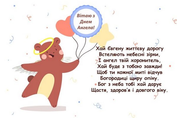 А ангел-покровитель запалить твою зорю,З Днем Ангела Євген, я тебе люблю!
