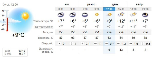 Протягом усього дня погода у Хусті буде похмурою. Без опадів.