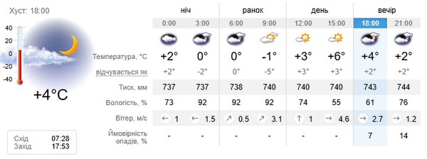 Прогноз погоди на 18 лютого